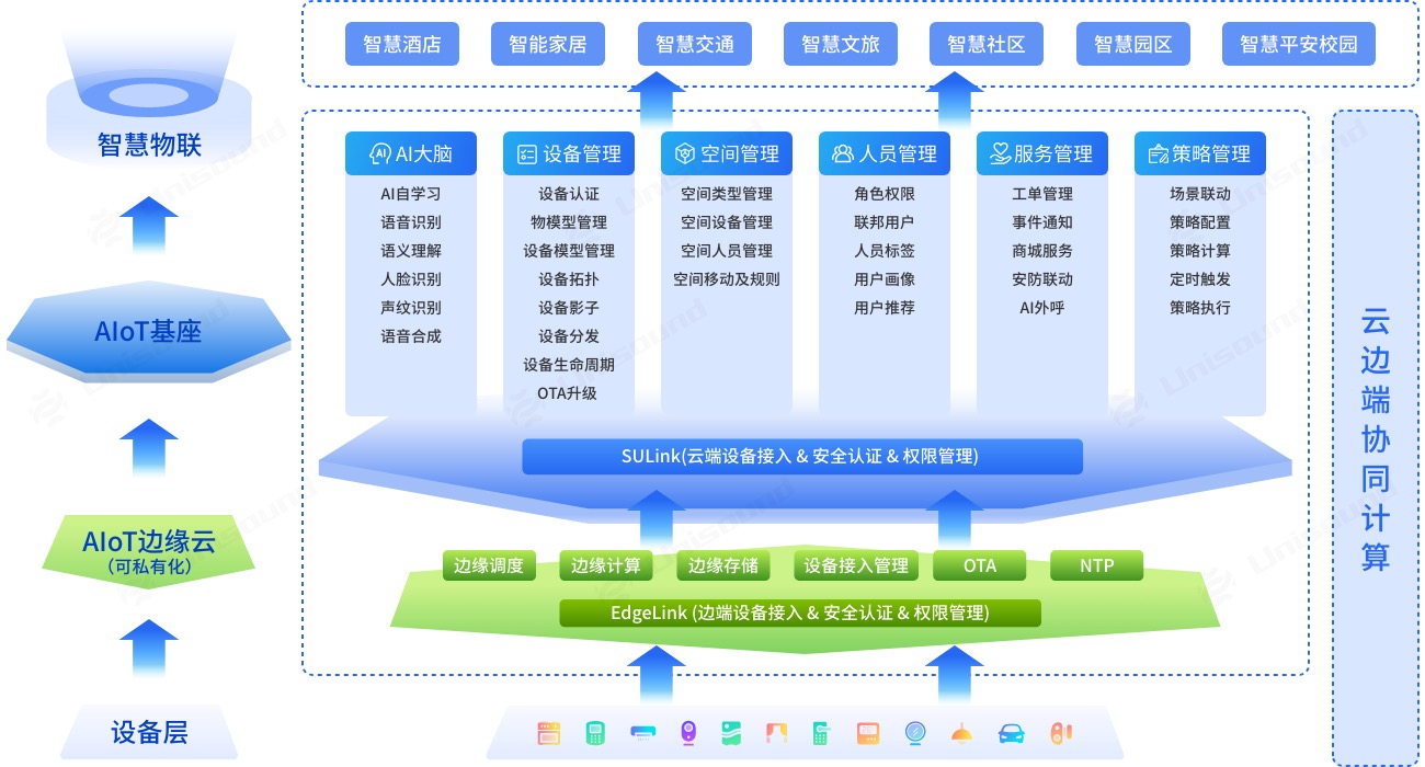 云智云AIoT基座在深度分析边缘场景下运维效率低、资源管理难度大以及软硬件方案异构严重等行业问题后,以云智云为中心,构建云边协同、边边协同和边端协同三位一体的云-边-端协同计算网络。为新一代智慧物联及运营模式转型提供有力保障,助力打造卓越而有温度的未来城市。